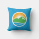 Um travesseiro com a bandeira de Provo, Utah. Uma bandeira azul com o logotipo da Cidade do Provo no centro. O logótipo representa o lago de Utah e os picos de montanha próximos com o sol ascensão ao fundo