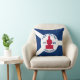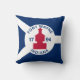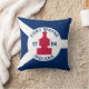 Travesseiro decorativo com a bandeira da cidade de Fort Wayne, Indiana; bandeira azul e branca e com blockhouse vermelho no centro e três ilustrações no campo azul - ilustração da cabeça do nativo americano, da flor de lis francesa e do leão britânico