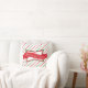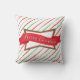 Design de travesseiro de festivo apresenta fundo vermelho e verde fino de faixas diagonais com faixa centrada no "Feliz Natal". Moderno, retrô, tradicional, século médio... este design trabalha bem com todos esses temas design!