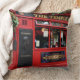 Travesseiro decorativo quadrado com o bar vermelho famoso com as cestas de suspensão das flores no distrito do bar do templo em Dublin, a capital de Ireland.