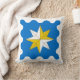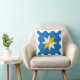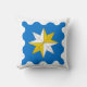 "Azure, uma estrela de bússola trimestral argent e ou, um acordo de bússola." A parte de trás do travesseiro é um padrão em cores coordenadas.