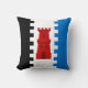 "Per pale sable and azure, em um assalto pálido, uma torre gula." Crachá Populacional para a Baronia dos Downs do Sul na Sociedade para o Anacronismo Criativo. A parte de trás do travesseiro é um padrão medieval em cores de coordenação.