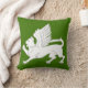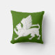 "(Sem fios) Um passante de gato alado, testa estendida, asas elevadas e ajeitadas, argent." Crachá da Populace para a Baronia do Morro de Windmasters na Sociedade para o Anacronismo Criativo. O verso do travesseiro é um padrão da era do Renascimento em cores coordenadas. A cor de fundo (mostrada em verde) pode ser alterada mediante solicitação.