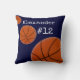Nome Personalizado da Equipe Esportiva de Basquete e Marinho Travesseiro azul de fundo. Um presente de excelente para o seu companheiro de equipe de basquete. Adicione uma caneca ou ímã semelhante ao tema Esporte para sua família e amigos. presentes legal para salas com temas desportivos. Excelente para todos rapazes raparigas homens mulheres e crianças. Equipe, treinador, "marche madness", bola, campo, número, hoop, net, fã, companheiro de equipe, esporte, jogo, basquete
