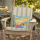 Ondas em uma praia arenosa e banhistas sob guarda-chuvas coloridos, esta design é uma adição divertida ao seu decoro exterior de verão.
