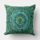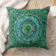 Travesseiro decorativo Beachy Blue e Green Spiderweb 6093 projetado com cores de praia do abstrato à noite do padrão verde e azul espiral. Por celeste@khoncepts.com #blueandgreomedecor