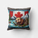 Almofada Beaver Building Dam Perto Da Bandeira Canadiana