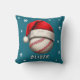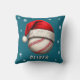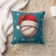 Travesseiro decorativo de nome do Ball Red Santa Hat Snowflakes. O design tem uma bola de beisebol com um chapéu vermelho de Papai Noel com flocos de neve brancos. Adicione seu nome.