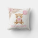 Este travesseiro decorativo adorável apresenta um ursinho bonito segurando um balão rosa empoeirado. Mostra também alguns elementos boêmicos modernos em cores castanho, rosa pálido e creme. Personalize o travesseiro com os detalhes do seu bebê e, se quiser reorganizar o estilo e posicionamento do texto, pressione o botão "Clique para personalizar mais".