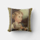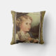 Travesseiro decorativo do ouro lindo com uma imagem do bebê Jesus a criança do cristo que guardara um cordeiro em seus braços. As palavras Latin "sejam meu protetor" são imprimidas acima.