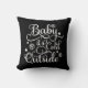 Design de travesseiro de na moda sazonal apresenta um design de tipografia "Baby it's Cold Outside" com sotaques de estrelas e flocos de neve. A cor preta de fundo pode ser personalizada para coordenar com a decoração de feriados.