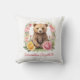 Um lindo urso bebê cercado por rosas rosa e amarelas e verde neste travesseiro para o berçário. Personalizado com o nome dos bebês. Na verdade, um guardião por décadas.