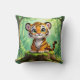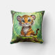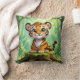 Uma almofada decorativa adorável para o quarto de uma criança. Um desenho animado fofo de um bebê tigre sentado na floresta parecendo adorável.