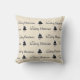 Simples e clássico travesseiro decorativo do padrão da árvore de Natal do país! Fundo bege. Em preto com sombreamento branco: árvores de Natal em potes com velas antiquadas, e as palavras "É um Natal do País" em dois tipos de tipografia.
