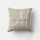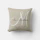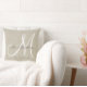 Travesseiro personalizado bege, cinza e monograma branco com sobrenome e data de casamento de sua família em um design de sobreposição de fonte de script em um fundo de efeito fotográfico de linha bege IMPRESSO. Elke Clarke© Disponível em www.zazzle.com/monogramgallery. Faz um presente excelente para recém-casados. Trendy de excelente, acessório elegante para o seu quarto, cadeira favorita, como decoração divertida em sua sala de estar ou adição decorativa formal à sua sala de estar. Outros estilos e cores disponíveis em nosso compro.