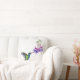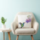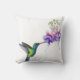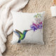 Almofada Beija-flor azul verde com flores roxas