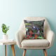 Almofada Beija-flor em Voo e Flores Vermelhas