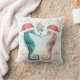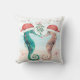 Tema costeiro travesseiro decorativo de algodão de Natal apresenta um casal de cavalo-d-água na praia vestindo chapéus de Papai Noel e beijando sob mistério. Visite a minha coleção de "Kiss de Natal Costeiro do Cavalo Costeiro" para coordenar convites, material de festa, decoração e muito mais. Arte da KL Stock.