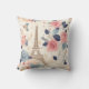 Travesseiro com um adorável padrão temático francês. Flores bonito, torre Eiffel e borboletas. As cores incluem rosa, azul, pêssego e creme.