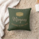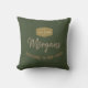 Fundo Verde para seu travesseiro decorativo rústico com sinal personalizado de boas-vindas em fonte sans serif e nome da família em fontes elegantes. A cor da fonte em tons de marrom complementa o fundo verde profundo.