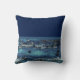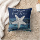 O Travesseiro decorativo azul Marinho náutico russo é projetado em ambos os lados com metade azul escuro e a outra metade é madeira azul de celeiro. "Bem-vindos à nossa casa de praia" está em letras brancas esbranquiçadas misturadas com cartas de escrevendo à mão em cima do centro. Você pode personalizar o texto se desejar clicando na opção personalizar modelo.
