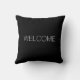 Preto e branco moderno e elegante com espirais cor de lacre travesseiro decorativo design. Texto branco tipografia 'bem-vindo' de ambos os lados. Use apenas o recurso "personalize este modelo" para mudar o texto da família para se adequar ao seu.