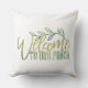 Almofada Bem-vindos à nossa diversão floral verde da varand