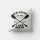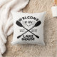 Levante suas férias para casa com este travesseiro decorativo rústico-chic. Design apresenta "Bem-vindo ao Lago House" em uma fonte preta de madeira com uma ilustração de corda e dois pás cruzados de canoa. Personalize com o ano em que começou a vida no lago! Excelente de lar ou presente de anfitriã também.