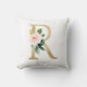 Almofada de monograma R floral feminina e elegante com ilustrações de aquarela de flores brancas, folhagens e monograma de folha falsa. Personalize adicionando um nome ou frase curta. Esta almofada floral de monograma será perfeita como um presente personalizado.