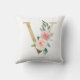 Almofada de monograma V floral feminina e elegante com ilustrações de aquarela de flores brancas, folhagens e monograma com folha falsa. Personalize adicionando um nome ou frase curta. Esta almofada floral de monograma será perfeita como um presente personalizado.