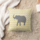 Silhueta em um fundo amarelo do ziguezague da viga, travesseiro decorativo animal do elefante da sala do berçário do design do bebê bonito.