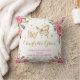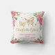 O travesseiro decorativo temático da borboleta feminino que caracteriza a ilustração lindo da aguarela flores cora e do rosa quente e um par de borboletas intrincadas do ouro