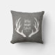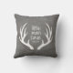 Seu pequeno vai adorar este travesseiro divertido! Este design apresenta um fundo texturizado cinza, galhadas e tipografia personalizada. Adicione a data de nascimento do seu filho para completar o visual.