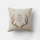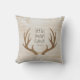 Seu pequeno vai adorar este travesseiro divertido! Este design apresenta um fundo com textura de madeira, galhadas e tipografia personalizada. Adicione a data de nascimento do seu filho para completar o visual.