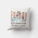 This father's gift throw pillow features three photos in the shape of the letters "DAD" along with the inscription "Best Dad Ever."