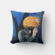 Um travesseiro decorativo de Halloween assustador, com o trabalho de arte pastel, "The Headless Biker". Esta ilustração mostra um fantasma de cabeça de abóbora vestindo uma jaqueta de couro fumando um cigarro em uma noite escura e fria de outubro. Arte original: Pastéis em papel. Copyright Dominic A. White. Todos os direitos reservados.