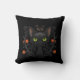 Black Cat Filigree / Quilling style design cushions featuring a Black Cat with large green eyes surrounded by flourishes and flowers on a black background.