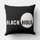 Texto do Buraco Negro e um círculo ou disco branco. Presentes, impressões, t-shirts e outros produtos para diversão e bom humor. Travesseiro decorativo engraçado. Personalizável. Você pode alterar a imagem e pode alterar ou excluir a cor do plano de fundo. O círculo preto branco de fundo também está disponível.