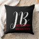 Almofada Black White Red Handwriting Monogram Add Name