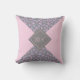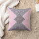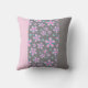 Flores cor-de-rosa com bloco colorido cor-de-rosa e travesseiro decorativo esticado com monograma.