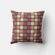 Travesseiro decorativo de padrão de bloco de cores geométrico projetado por Nisha Prabhu. Amarelo-mostarda, vermelho-magenta, cinzas e blocos coloridos brancos em fundo preto. Presente perfeito para maquiador, salão de beleza, cosmetólogo, entusiasta da maquiagem.