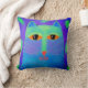 Minha pintura colorida de abstrato de um gato azul faz esse travesseiro de gato decorativo como um roxo para amantes de gatos!