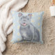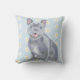 Esta almofada de lançamento apresenta uma cinza azul giro Bulldog Francês sobre um fundo azul claro com Disies brancas.