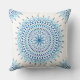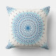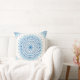 Travesseiro decorativo de mandala azul e branca.