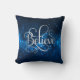 Este travesseiro decorativo dramático e elegante é bonito durante a época de Natal, mas pode ser apropriado para ser exibido durante todo o ano. Apresenta uma escrita de prata que diz "Acredite" contra um céu azul noturno com estrelas azuis brilhantes. O fundo do travesseiro tem o mesmo fundo noturno estrelado sem o texto.