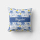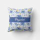 Blue Toile Palm Trees Lemons Monogram Throw Pillow . Bring a splash of tropical coastal charm to your home decor with this lovely throw pillow featuring a light blue striped background adorned with sketched blue palm trees and vibrant yellow lemons. Customizable white script lettering, for your name making it a stylish and personalized pillow for any home.