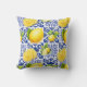 Almofada Blue White Lemon Tile Pattern Mediterranean Citrus
