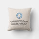 A detailed blueprint-style illustration of the letter O is presented against a vibrant blue background. The letter itself is rendered in white, with intricate details and precise measurements indicated by thin white lines. The back of the pillow includes a blue outline of the letter O set against a textured light beige background with a 4-line poem about the letter below.
