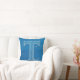 A detailed blueprint-style illustration of the letter T is presented against a vibrant blue background. The letter itself is rendered in white, with intricate details and precise measurements indicated by thin white lines. The back of the pillow includes a blue outline of the letter T set against a textured light beige background with a 4-line poem about the letter below.