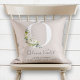 Uma bela e elegante travesseiro decorativo de natalidade de menina. Este travesseiro apresenta um belo fundo cor-de-rosa pincelado, e o nome inicial do bebê O em branco, e decorado com lindas rosas brancas de aquarela e verde de eucalipto. O nome do bebê está escrito abaixo em tipografia manuscrita com letra escrita, seguida das estatísticas de nascimento e nascimento do bebê. O design é o mesmo na frente e atrás. Seria uma bela adição para o berçário do bebê! Copyright Decor Doméstico Personalizado, todos os direitos reservados.